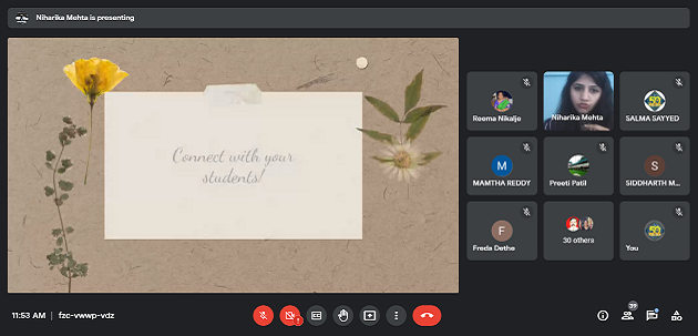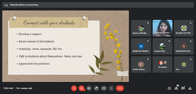 An exclusive webinar session for the teachers was organized by the MES’s HOCL School, Rasayanion the topic “Role of Teachers in Emotional Well-Being of Students”in its endeavours to empower school leaderships. HOCL School invited speaker Ms. Niharika Mehta, School Counsellor on 23rd October, 2021 at 11:30 A.M and conducted the webinar through the Google meet platform.